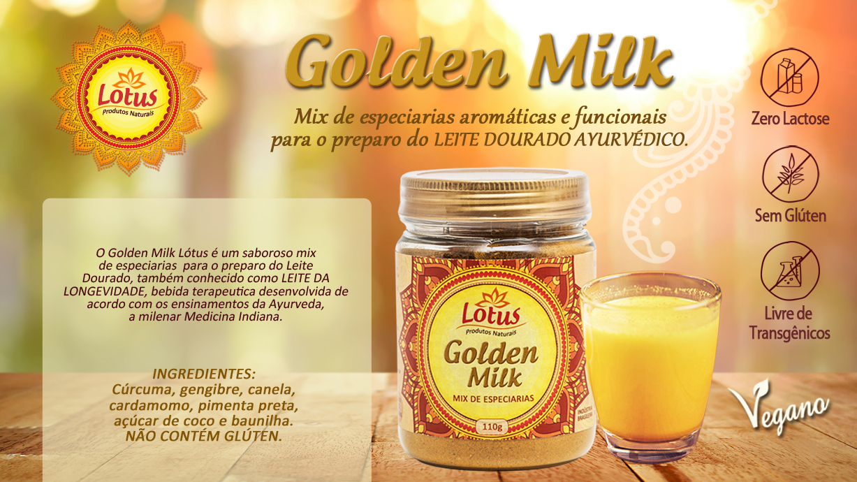 GOLDEN MILK LOTUS é uma mistura Vegana com origem na milenar Medicina Ayurveda,um blend de especiarias em pó para o preparo do Leite Dourado. Conhecida como a bebida da longevidade.